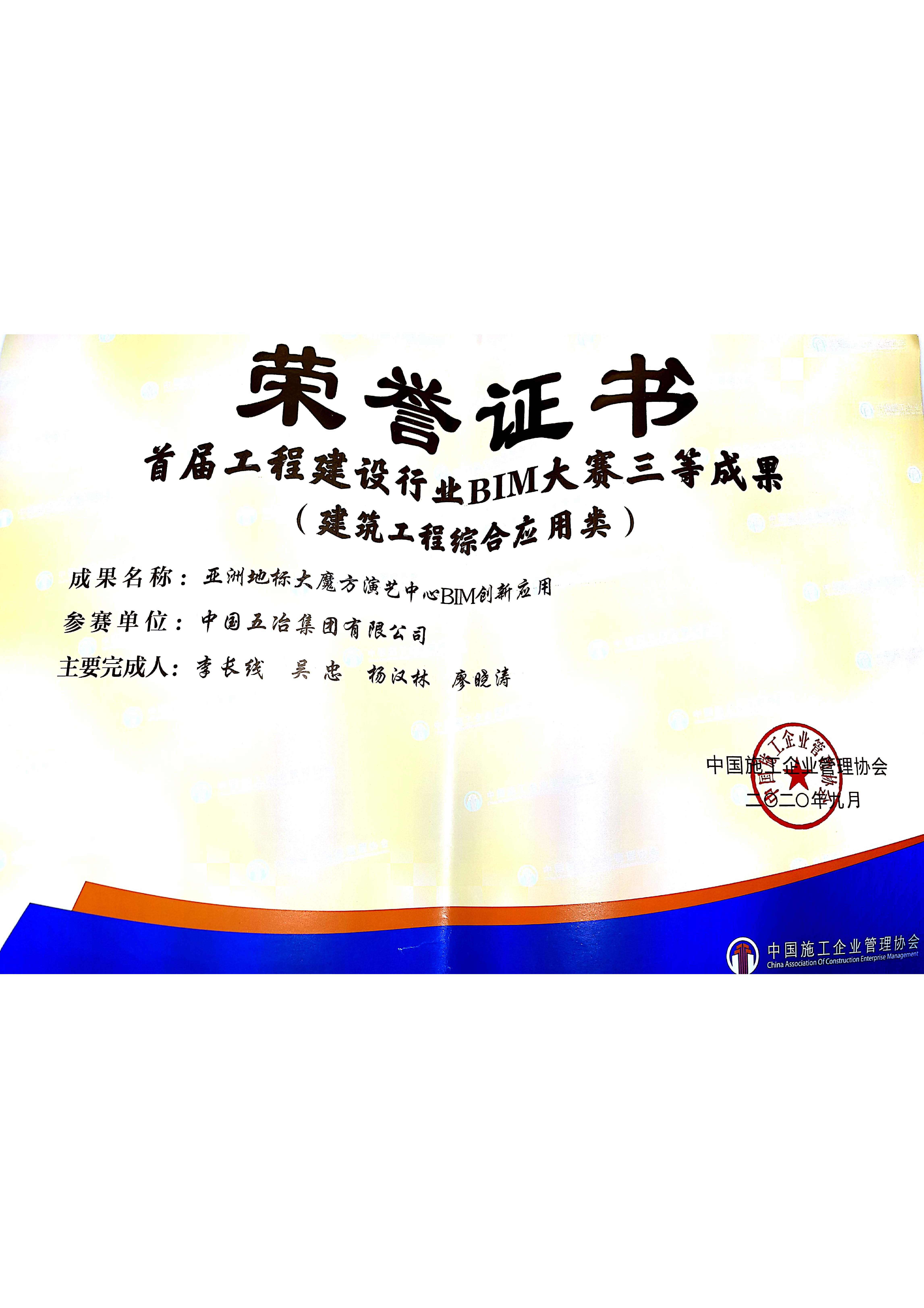 亞洲地標大魔方演藝中心BIM創新應用——中施協首屆BIM大賽三等獎(建筑工程類)