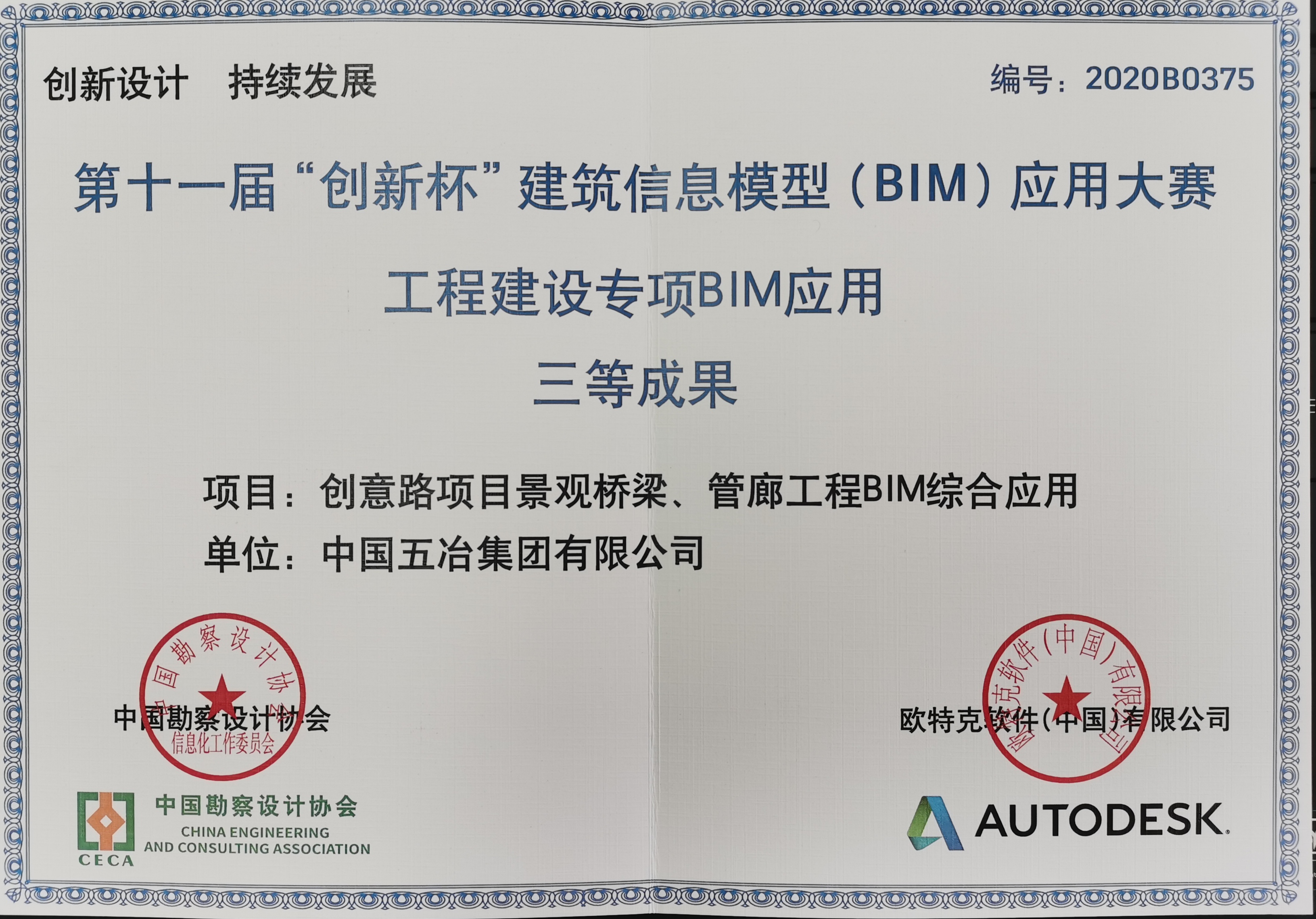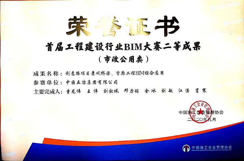 創意路項目景觀橋梁、管廊工程BIM綜合應用——第二屆冶金建設行業BIM大賽二等獎