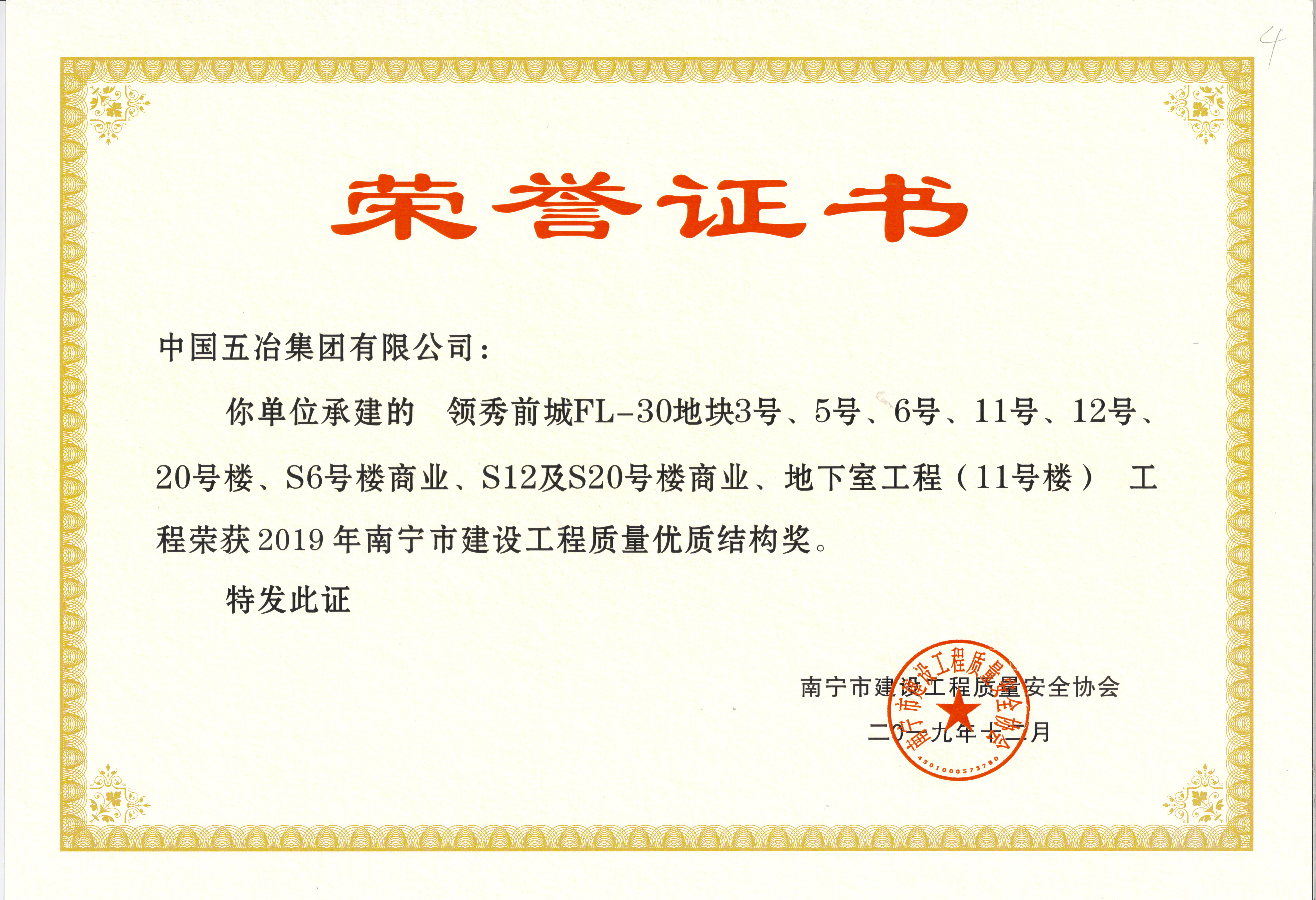 領秀前城FL-30地塊工程—2019年南寧市建設工程質量優質結構獎