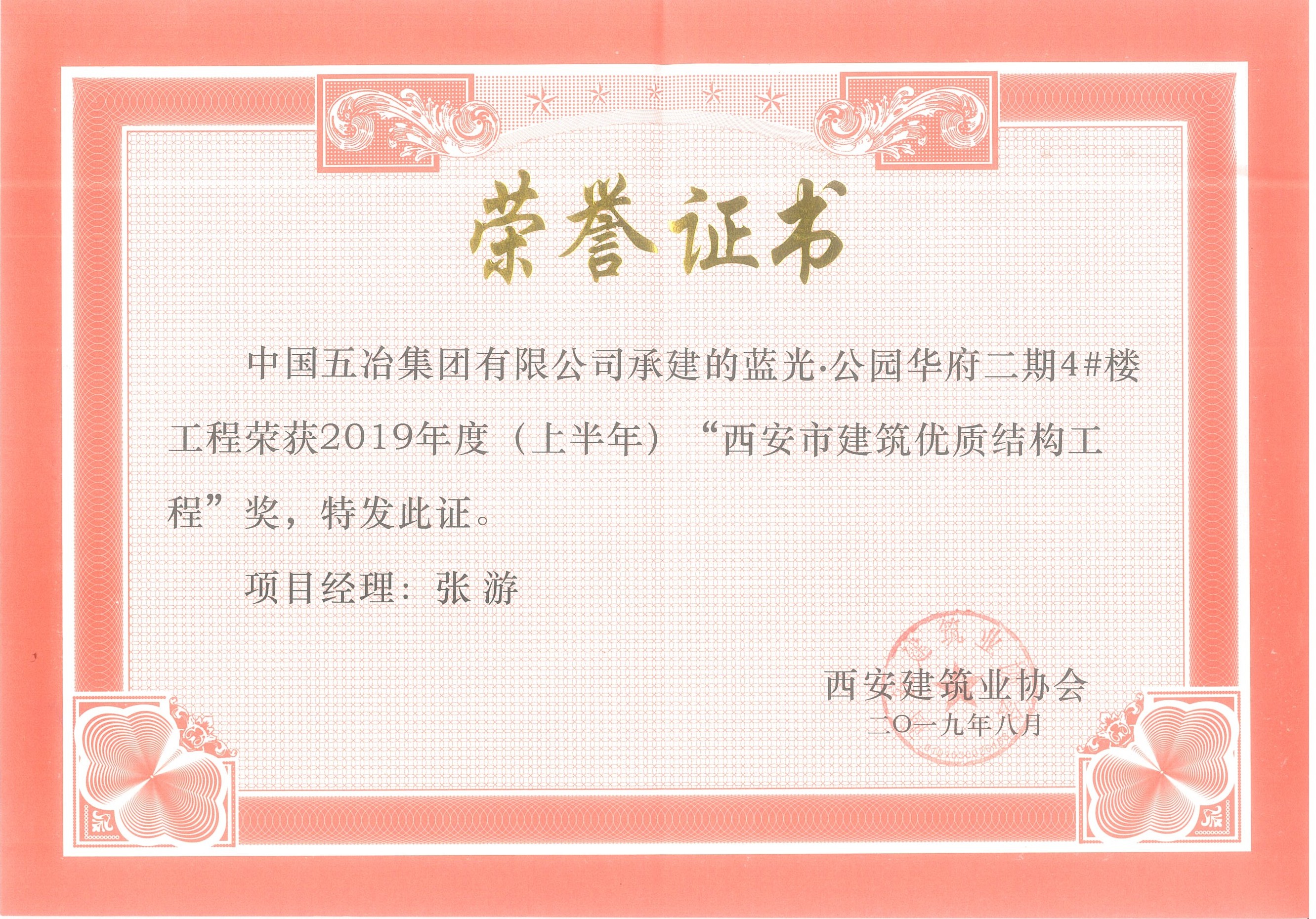 西安藍光公園華府二期—2019年度(上半年)西安市優(yōu)質(zhì)結(jié)構(gòu)工程