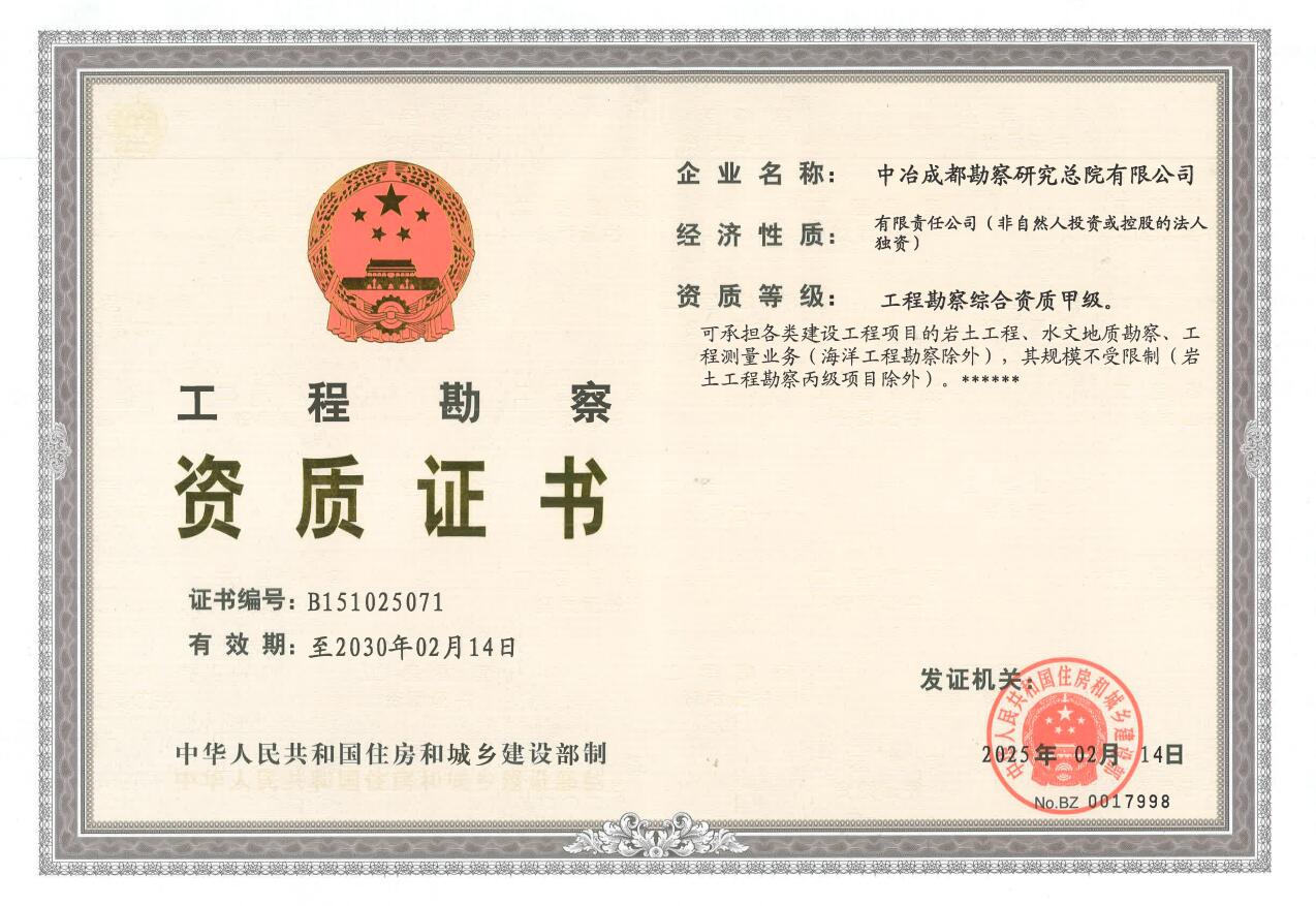 工程設計資質證書(建筑行業(yè)、市政行業(yè)、公路行業(yè)、冶金行業(yè)甲級)