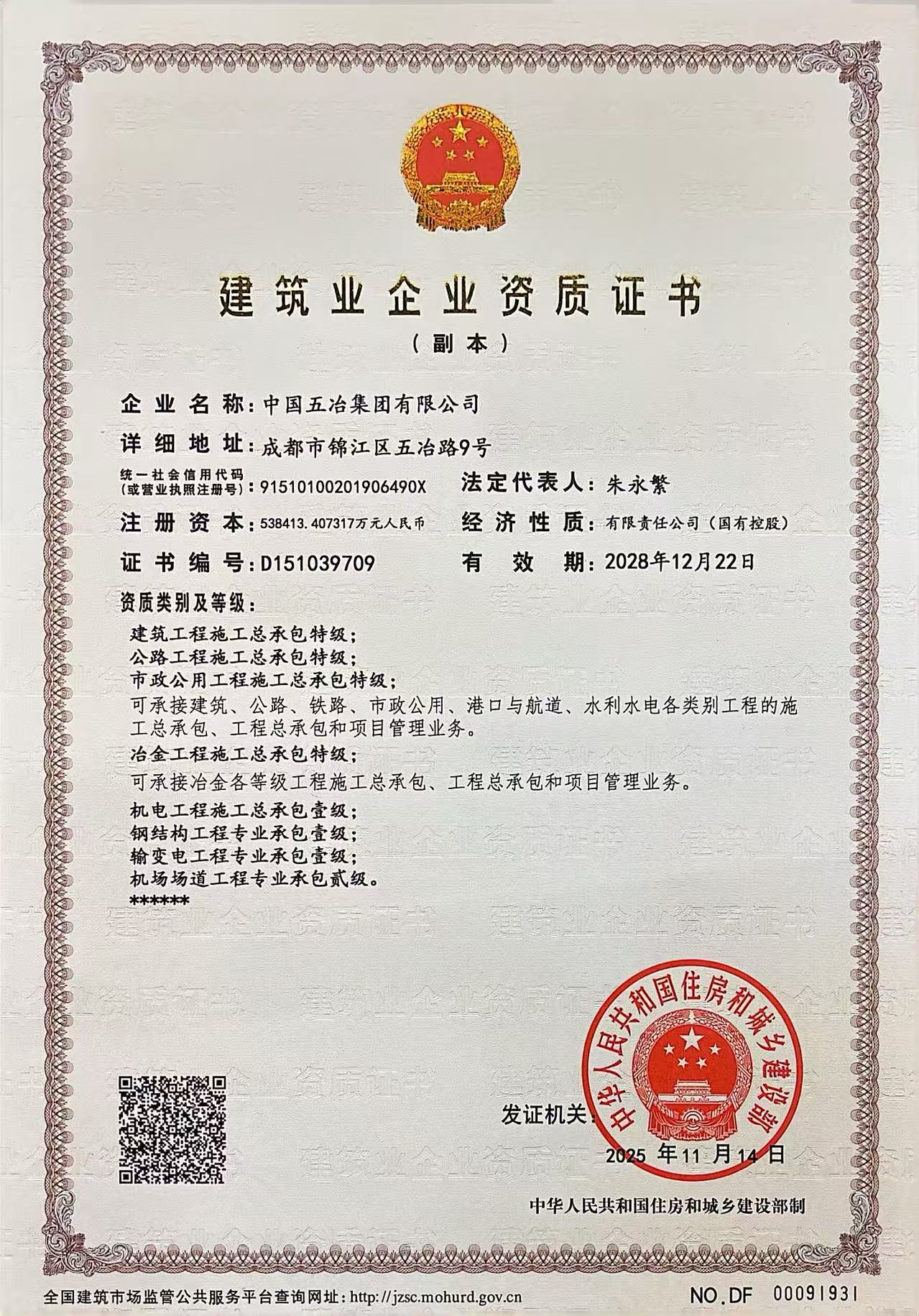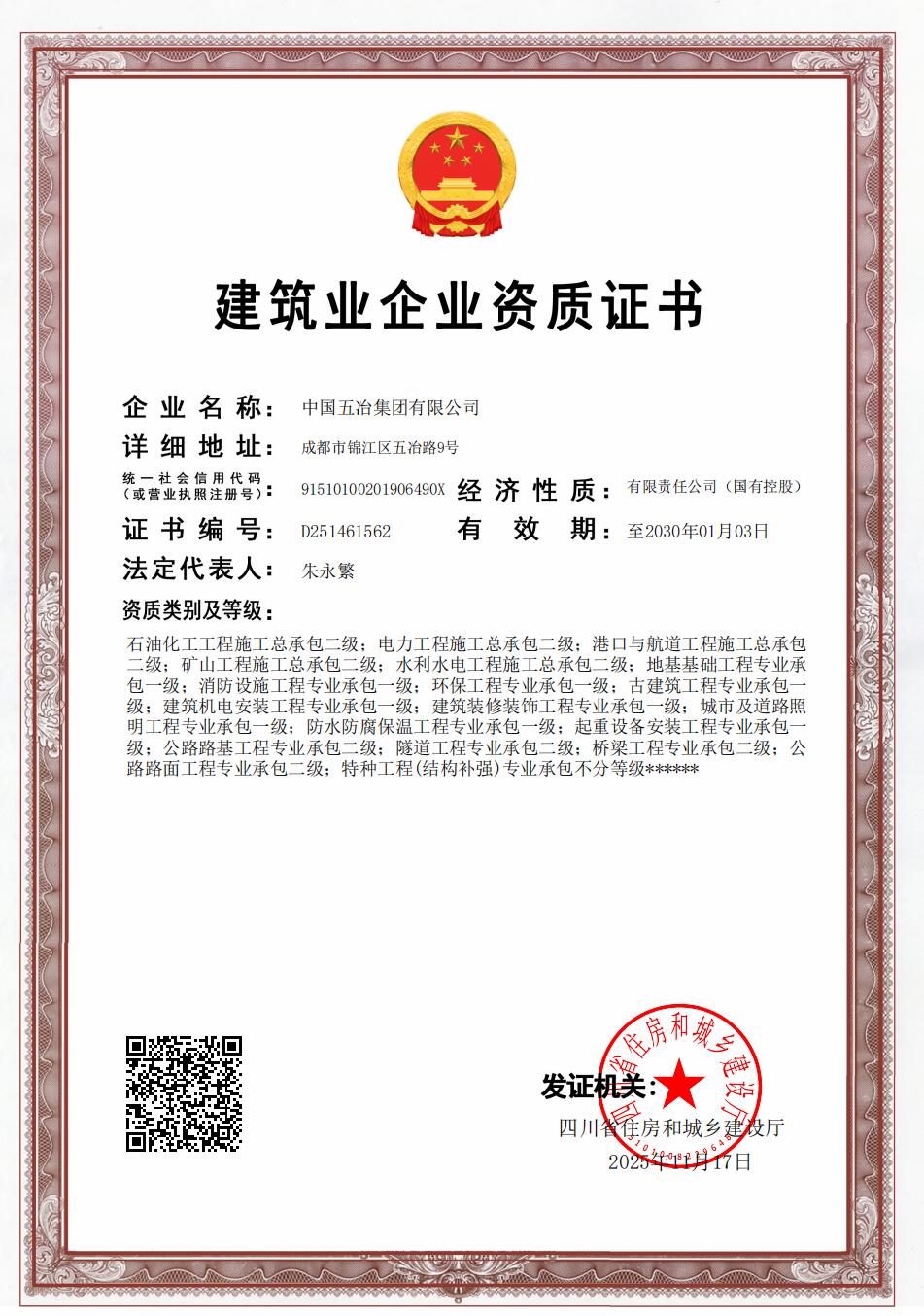建筑業(yè)企業(yè)資質證書(建筑、市政、公路、冶金特級)