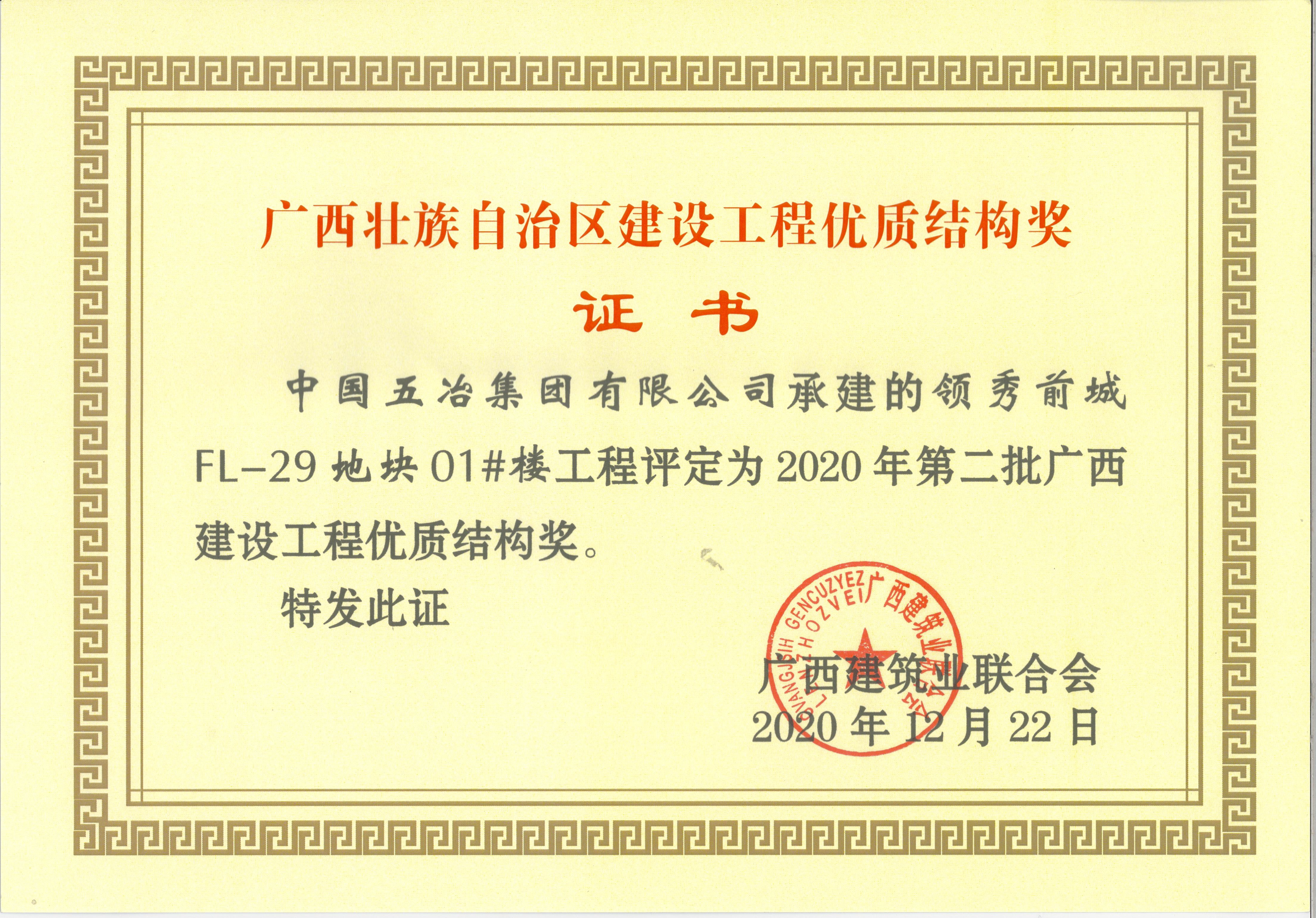 領秀前城FL-29地塊01#樓—2020年第二批廣西建設工程優質結構獎
