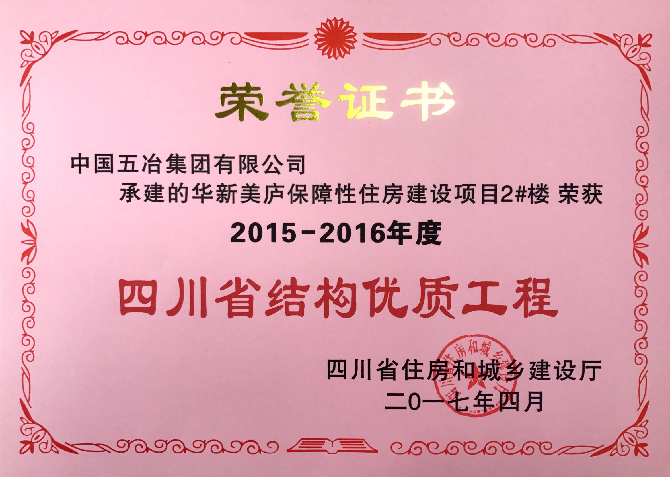 華新美廬保障性住房建設項目2樓-2015-2016年度四川省結構優質工程