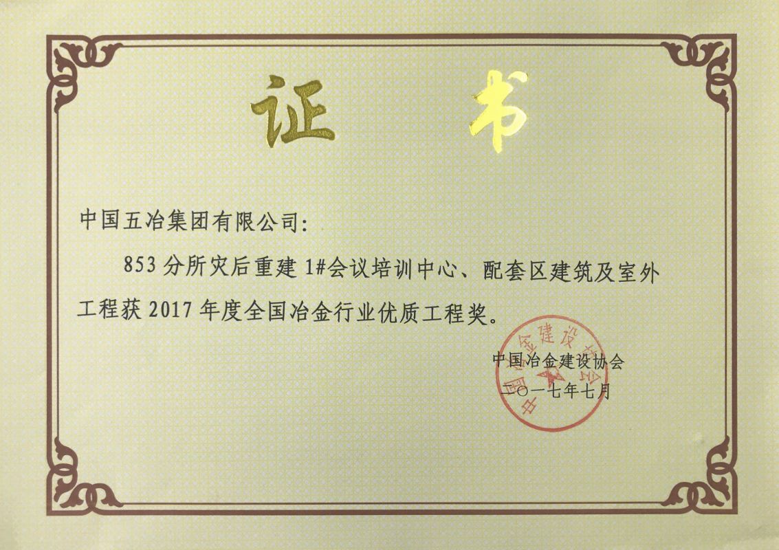 853分所災后重建1#會議培訓中心、配套區建筑及室外工程-2017年度全國冶金行業優質工程