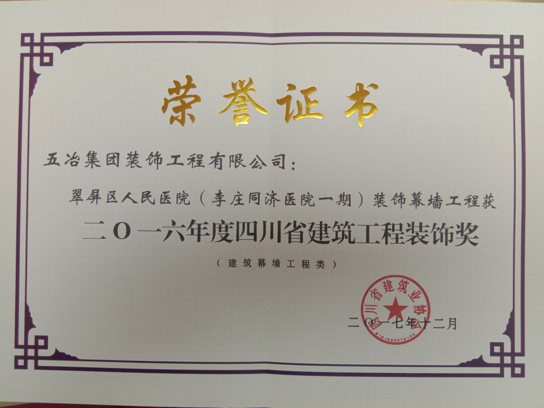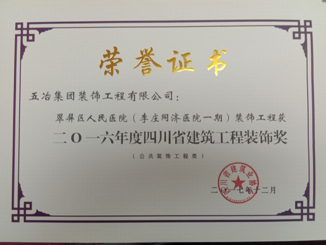 翠屏區人民醫院(李莊同濟醫院一期)裝飾工程-2016年度四川省建筑工程裝飾獎(裝飾類)