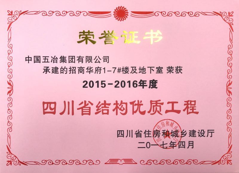 招商華府1-7樓及地下室-2015-2016年度四川省結構優質工程