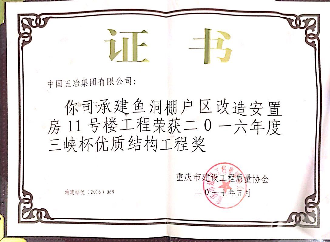 魚洞棚戶區改造安置房11號樓-2016年度重慶市三峽杯