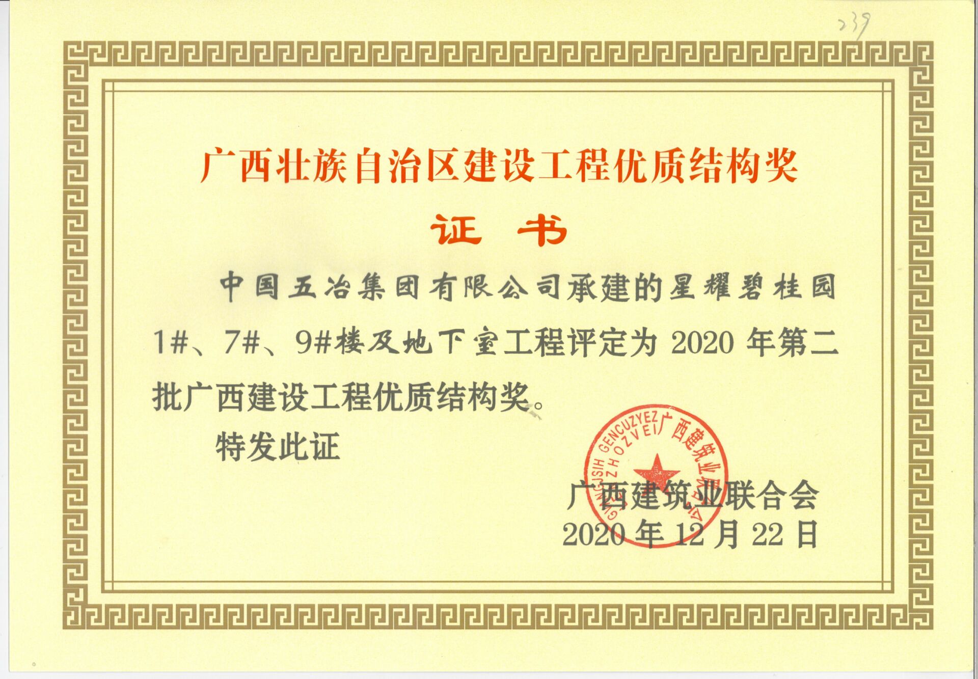 星耀碧桂園1#、7#、9#樓及地下室工程—2020年第二批廣西建設工程優質結構獎