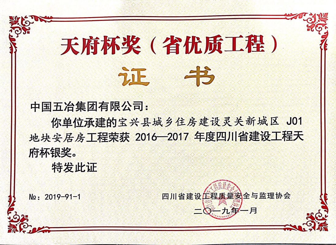 寶興縣城鄉住房建設靈關新城區J01地塊安居房工程-2016-2017年度四川省天府杯
