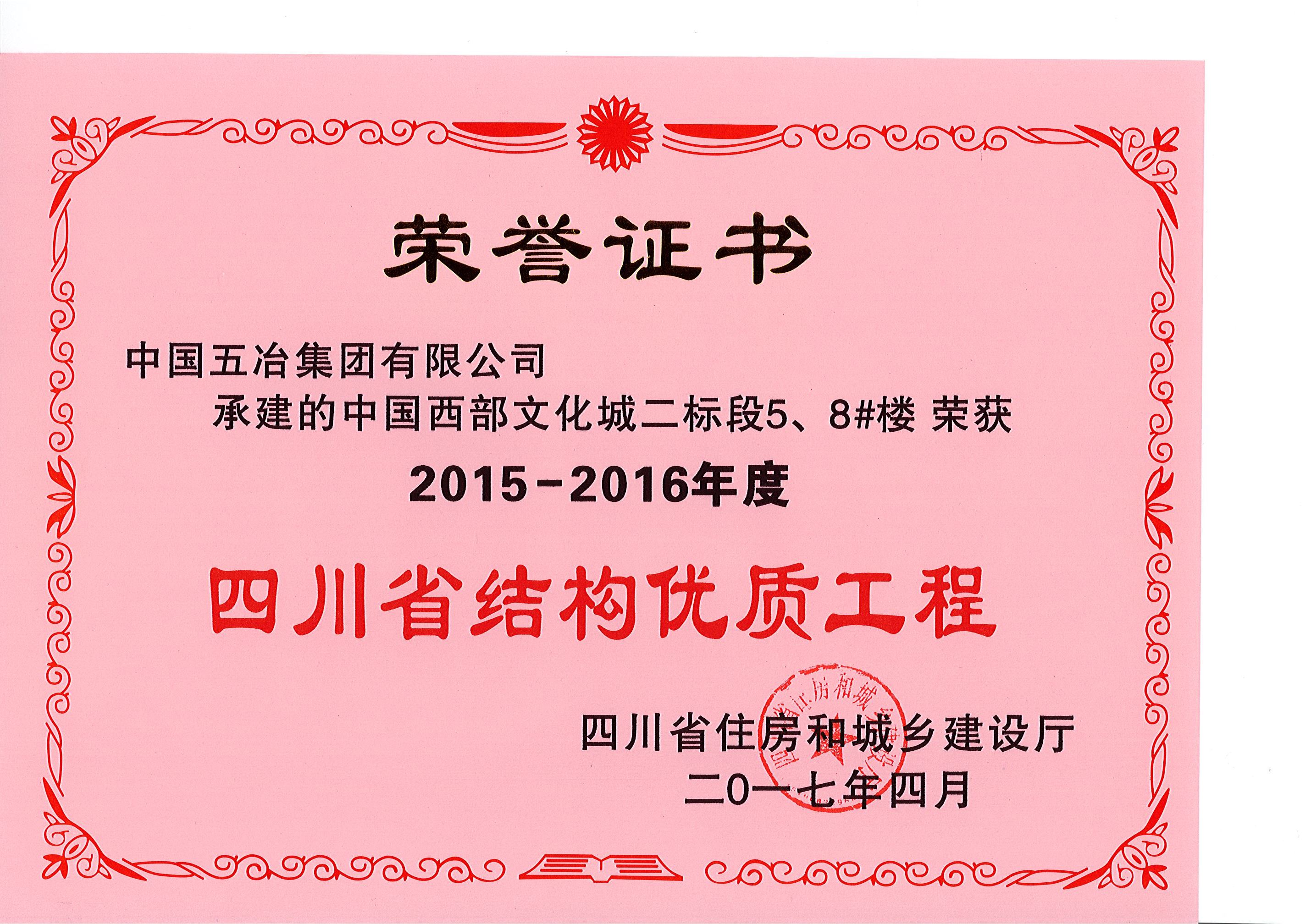中國西部文化城二標段5、8#樓—2015-2016年度四川省結構優質工程