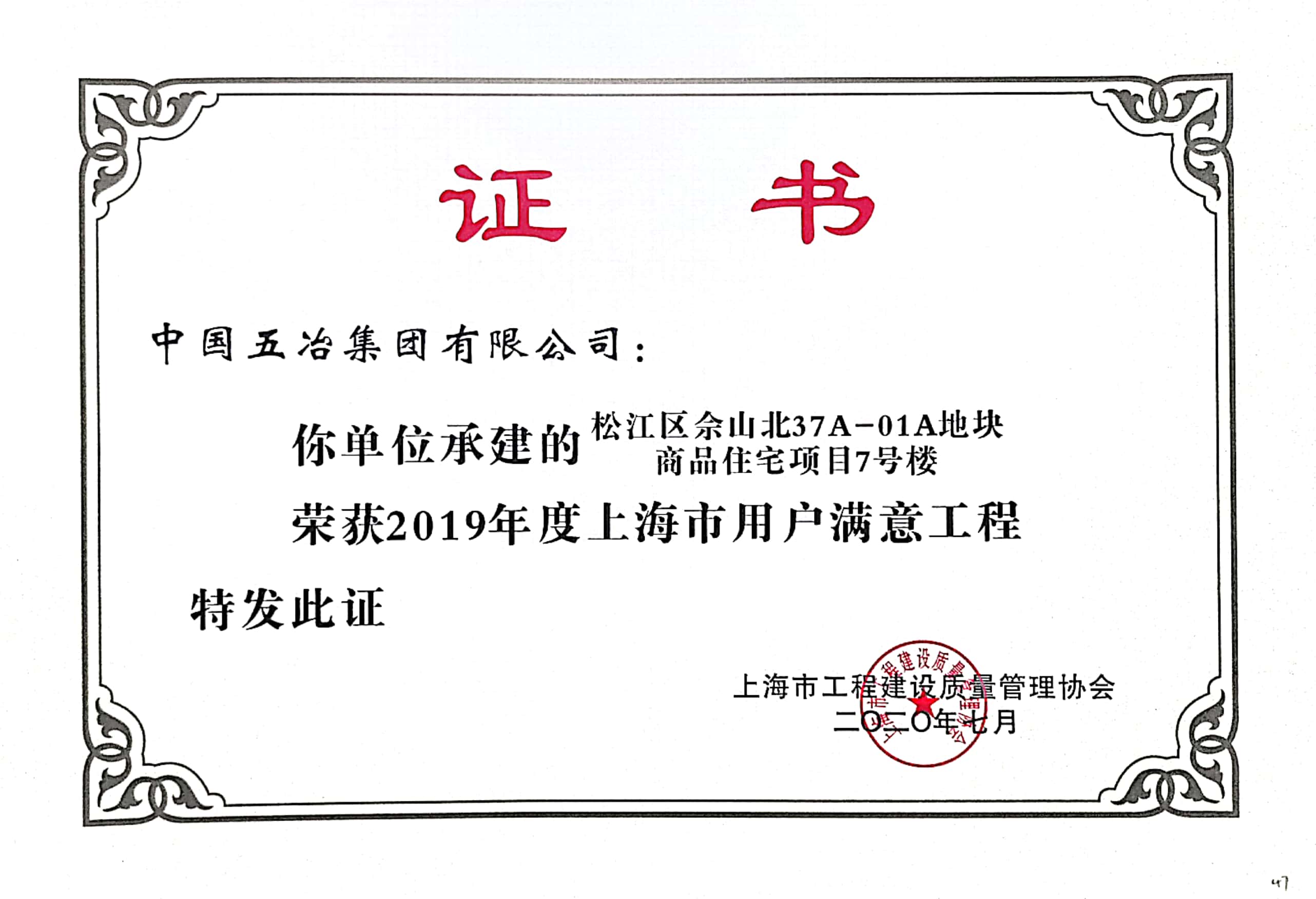 松江區佘山北37A-01A地塊商品住宅項目7號樓榮獲2019年度上海市用戶滿意工程