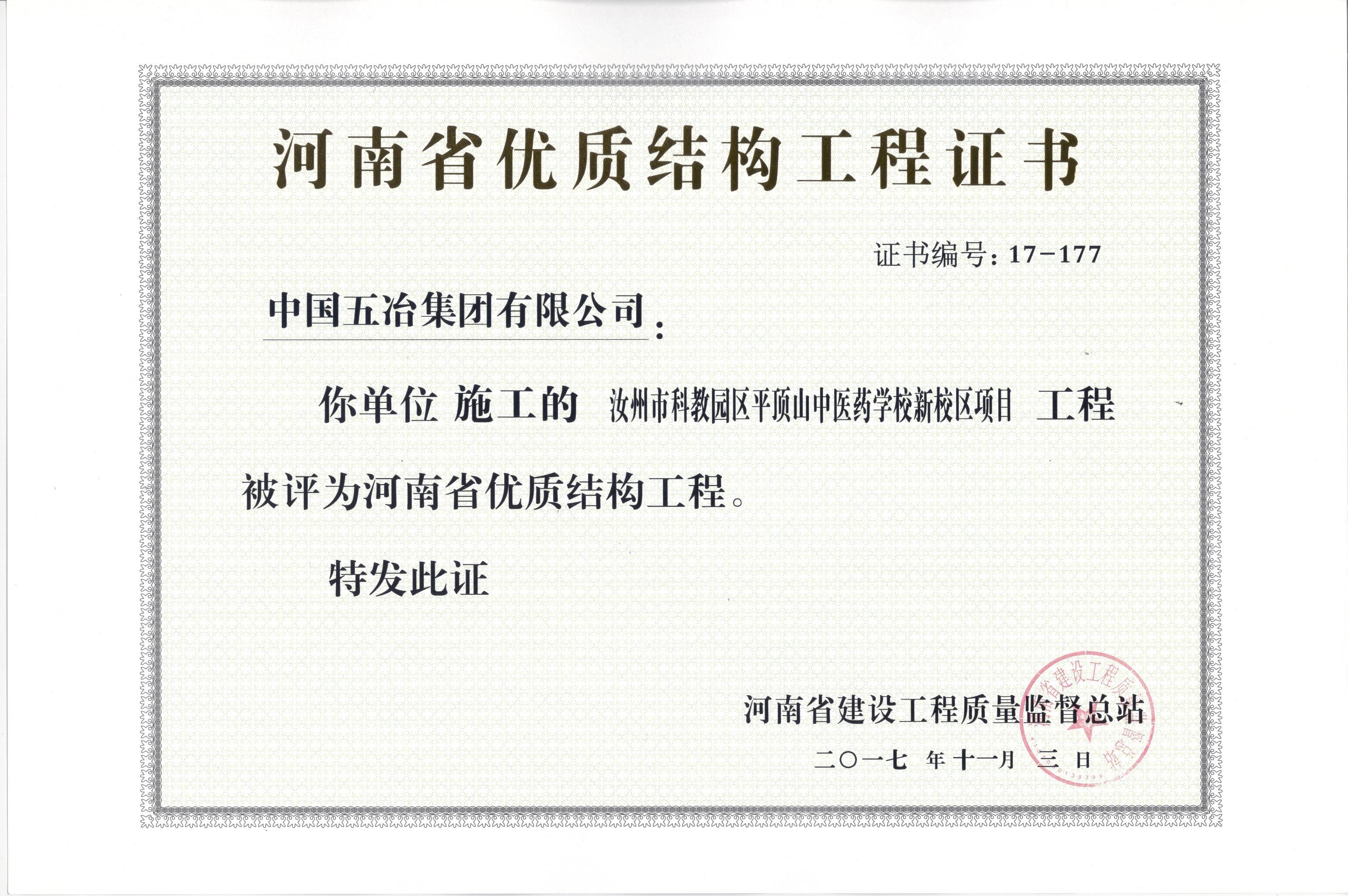 汝州市科教園區(qū)平頂山中醫(yī)藥學(xué)校新校區(qū)項目榮獲2017年河南省優(yōu)質(zhì)結(jié)構(gòu)工程獎