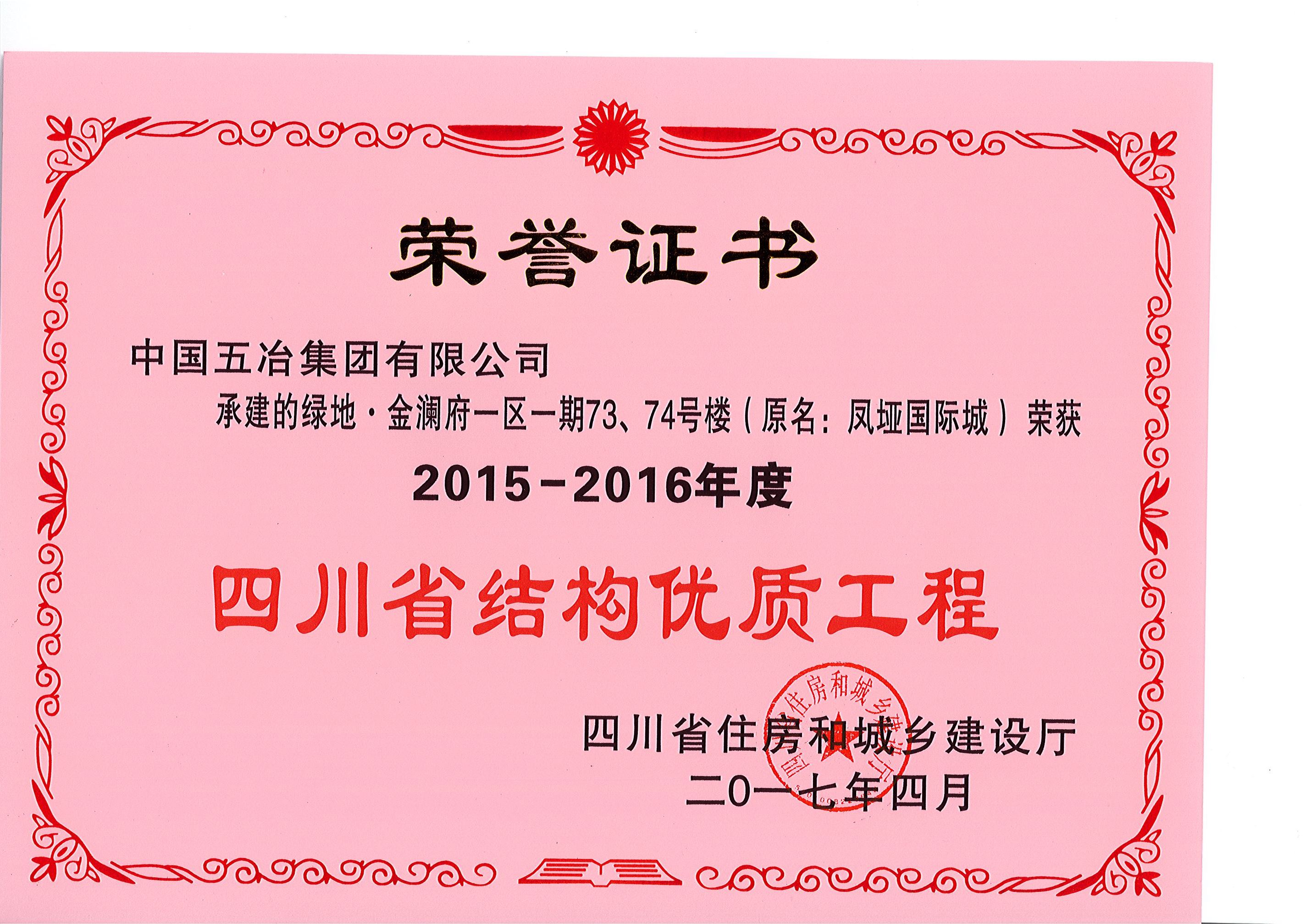 綠地.金瀾府一區(qū)一期73、74號樓—2015-2016年度四川省結(jié)構(gòu)優(yōu)質(zhì)工程