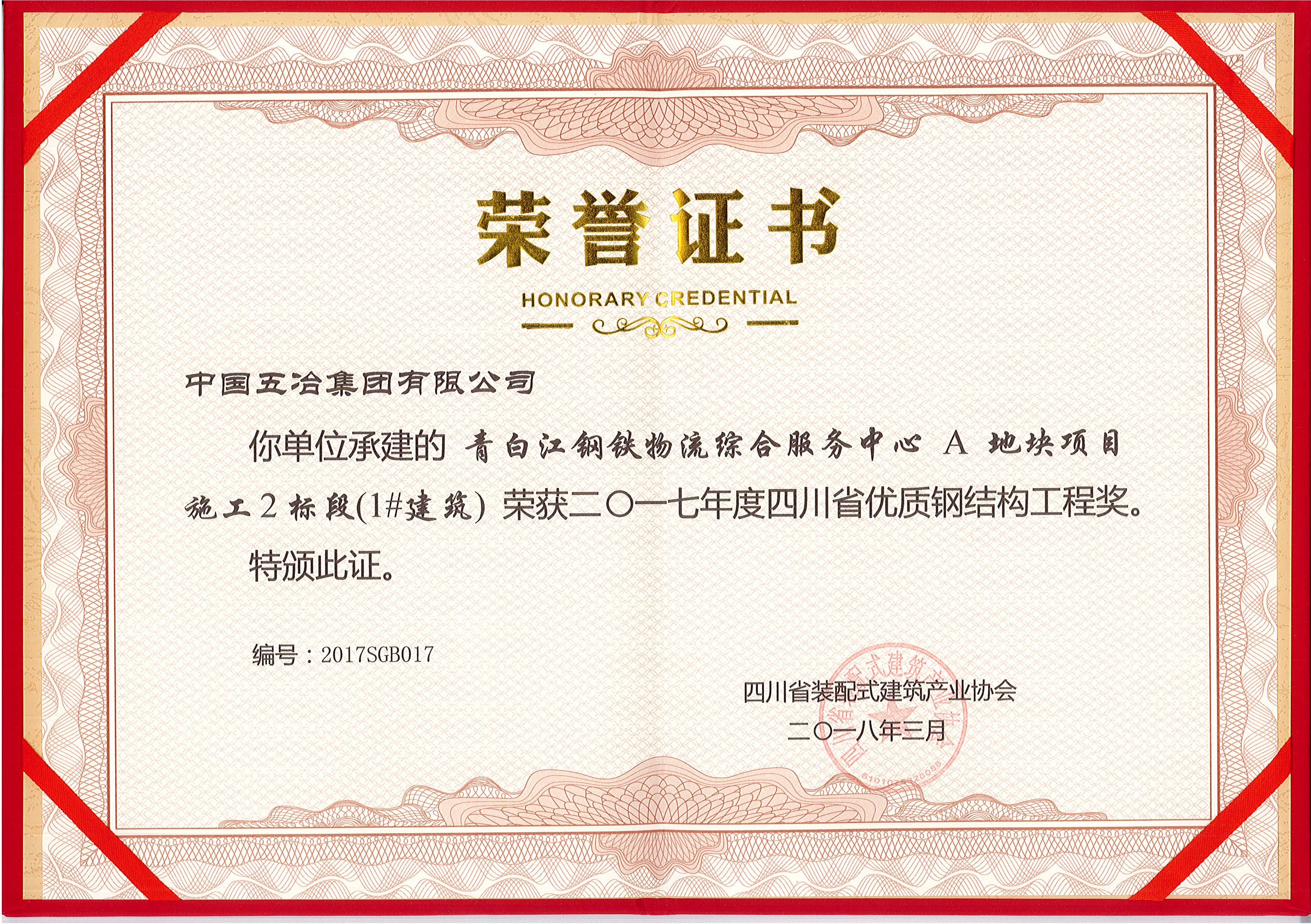 青白江鋼鐵物流綜合服務(wù)中心A地塊項目(1#建筑)—2017年度四川省優(yōu)質(zhì)鋼結(jié)構(gòu)工程獎