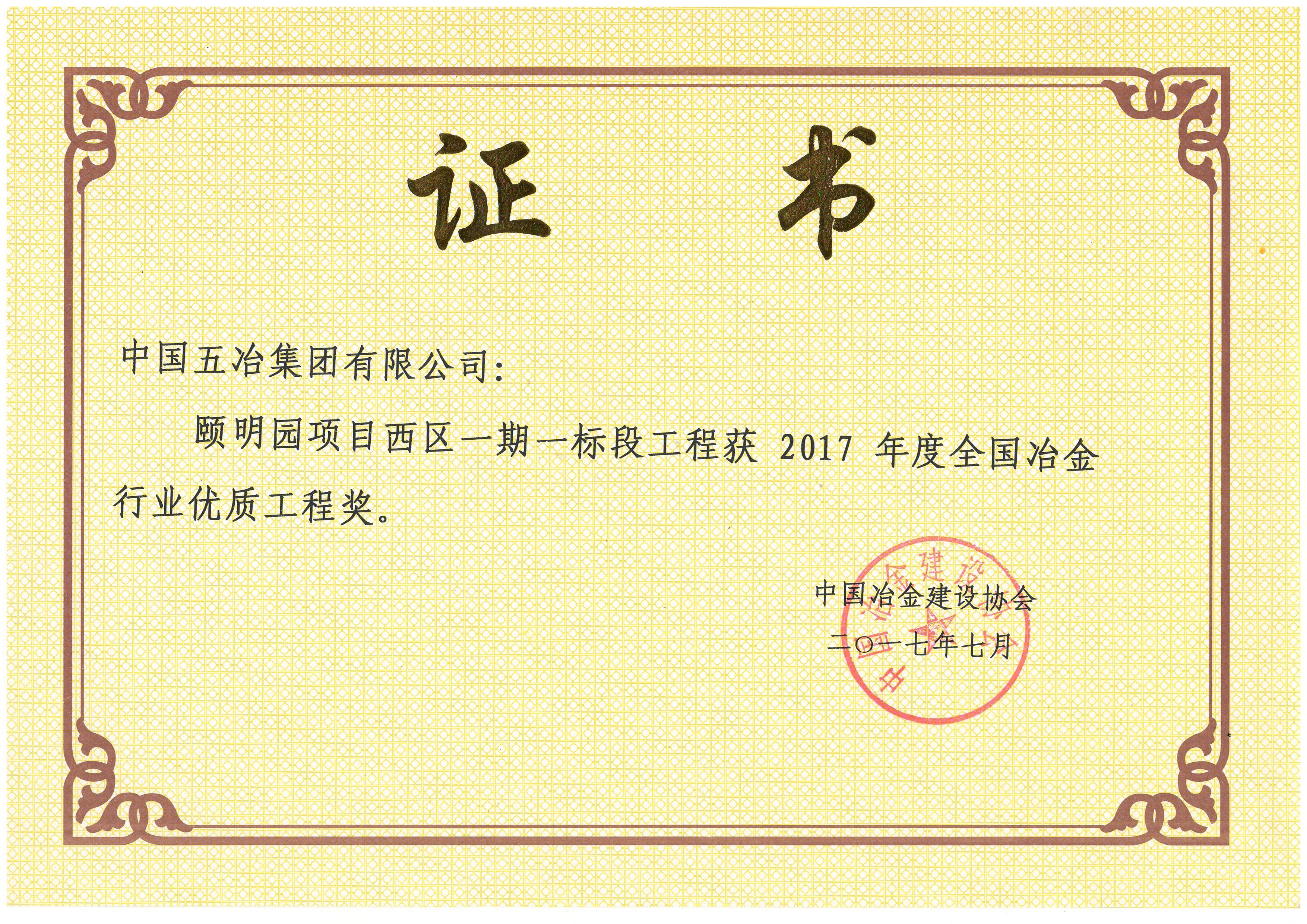 頤明園西區(qū)項目一期一標(biāo)段工程—2017年度全國冶金行業(yè)優(yōu)質(zhì)工程獎