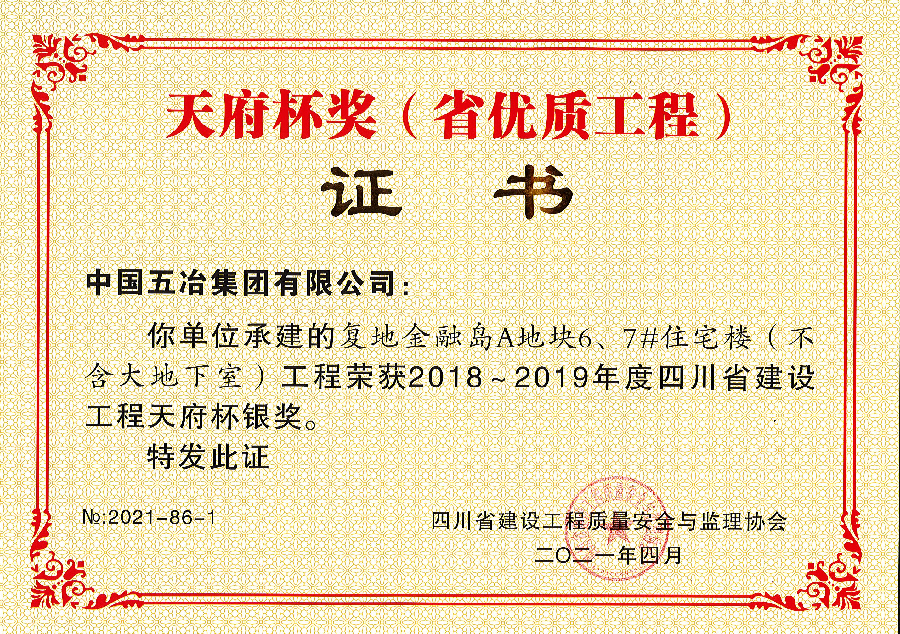 復地金融島A地塊6、7#住宅樓(不含大地下室)—2018-2019年度四川省建設工程天府杯銀獎