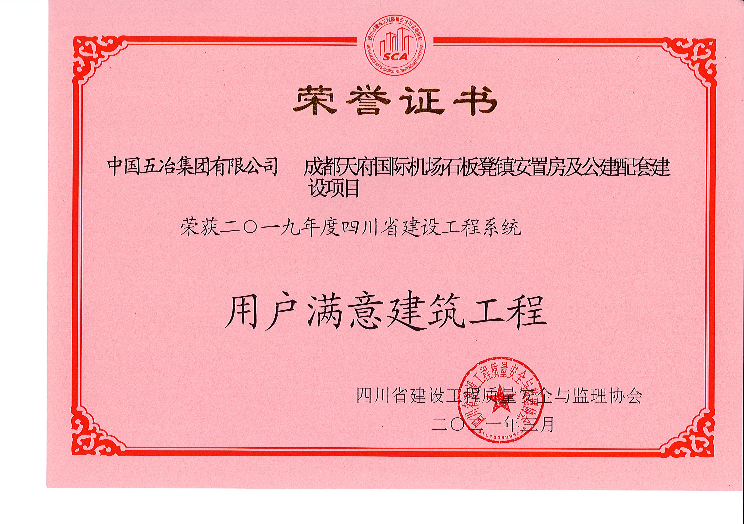 成都天府國際機場石板凳鎮安置房及公建配套建設項目—2019年四川省建設工程系統用戶滿意工程