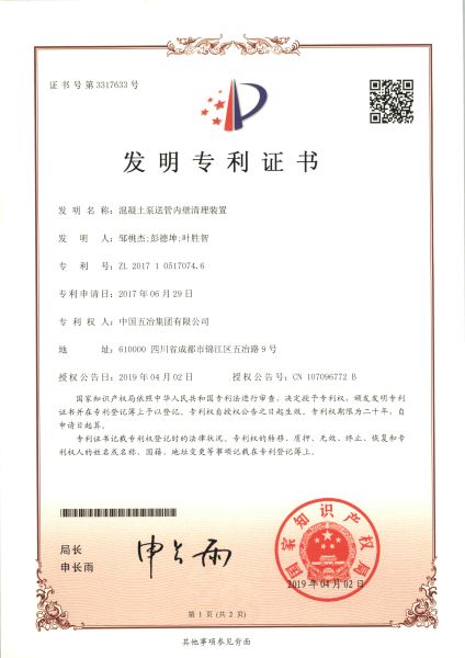 混凝土泵送管內壁清理裝置 ZL201710517074.6