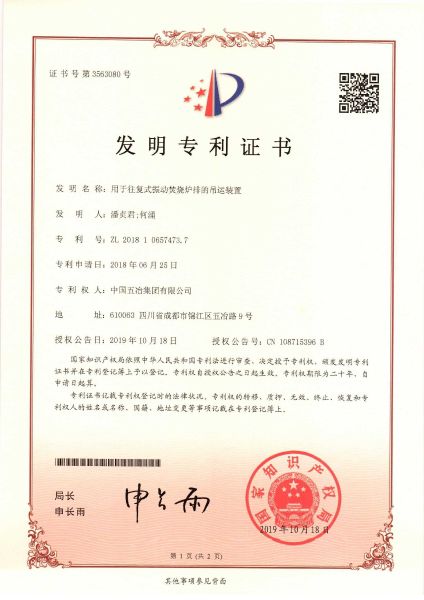 用于往復式振動焚燒爐排的吊運裝置 ZL2018106574737