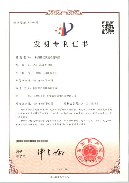 一種路基壓實度檢測裝置 ZL2017108880535