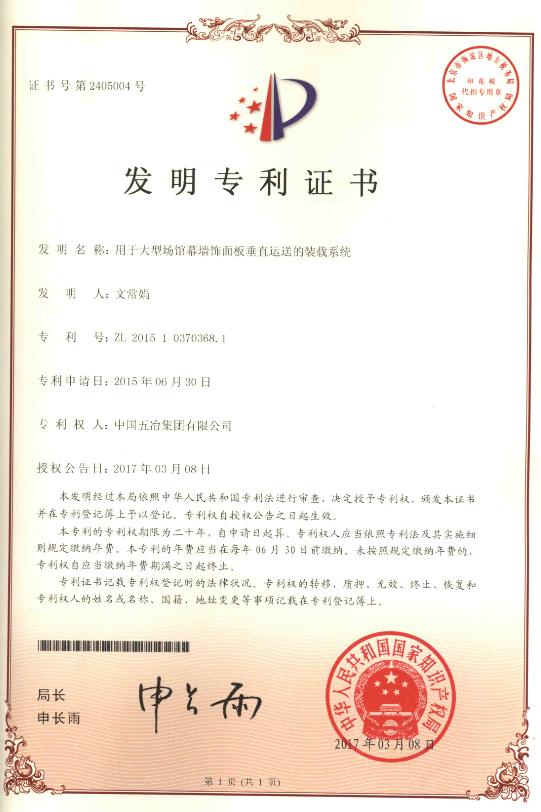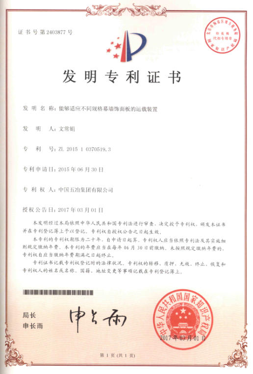用于大型場館幕墻飾面板垂直運送的裝載系統 ZL2015103703681