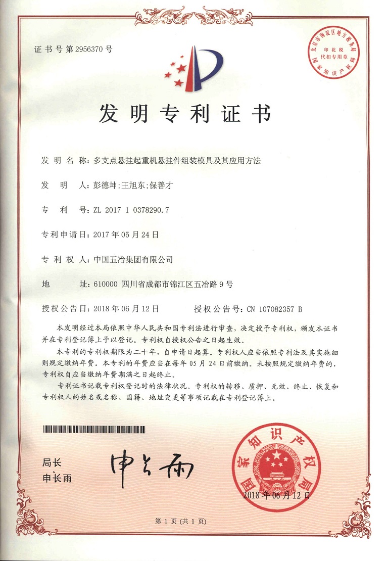 多支點懸掛起重機懸掛件組裝模具及其應用方法 ZL 201710378290.7