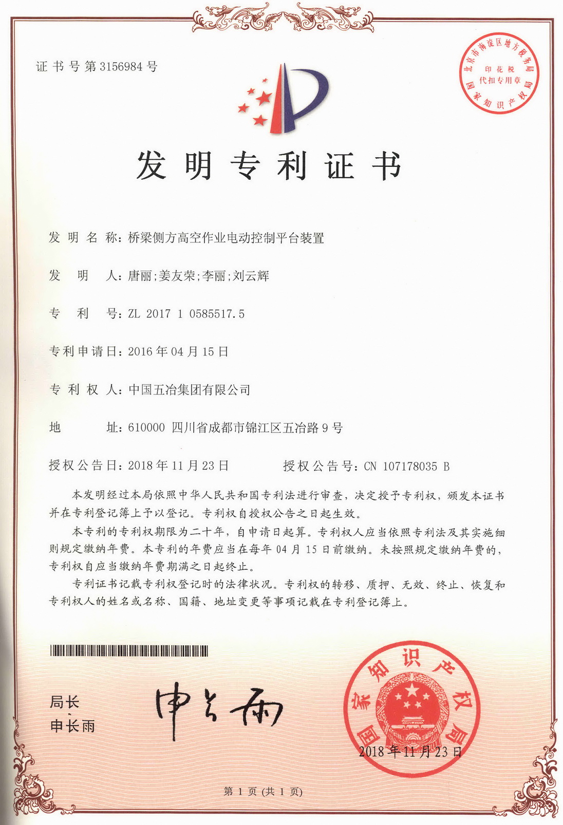 橋梁側方高空作業平臺裝置 ZL 201710585517.5