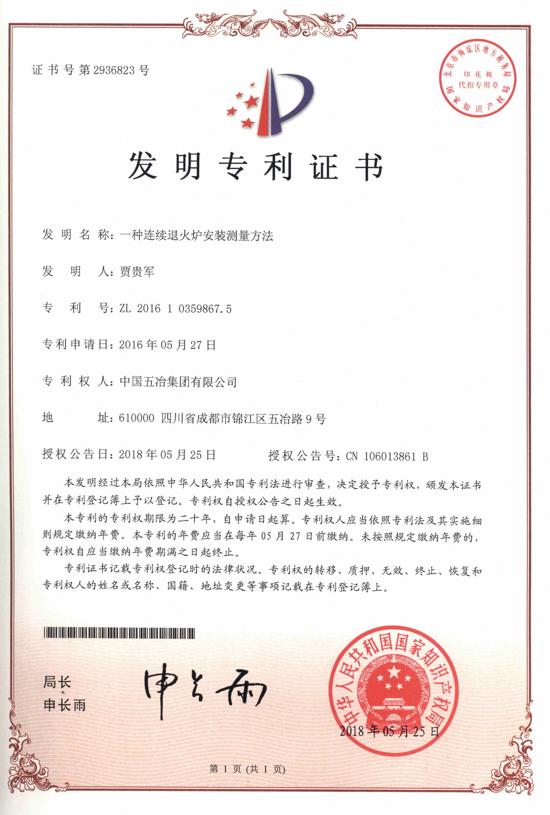 一種連續退火爐安裝測量方法 ZL 201610359867.5
