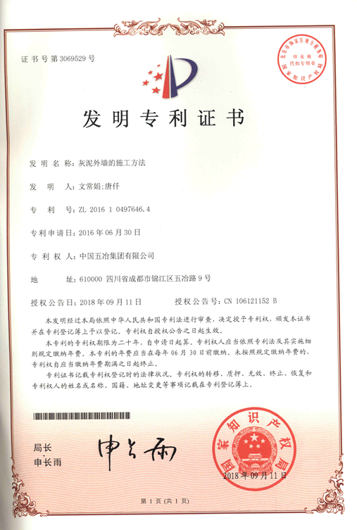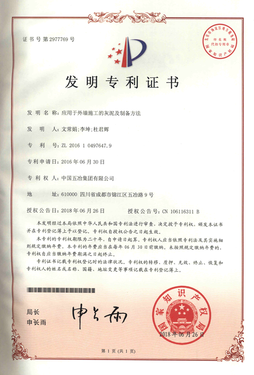 應用與外墻施工的灰泥及制備方法 ZL201610497647.9