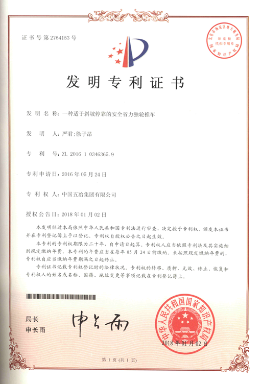 一種適于斜坡停靠的安全省力獨輪推車 ZL 201610346365.9