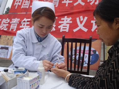 早上9點半,醫院的志愿者們來到衛生院時,已有50余名村民早已衛生院門前等待著志愿者們的到來。在衛生院臨時設置的義診服務點,志愿者們為聞訊趕來的村民們進行了測血壓、測血糖、檢查視力、眼底及耳鼻喉、內外婦科的常規檢查,開展了疾病咨詢,健康知識宣講。為前來義診的村民發放各種健康知識宣傳資料100余份,免費檢查診療80余人。義診結束后志愿者們還對衛生院護理工作及藥學工作進行了專業指導。