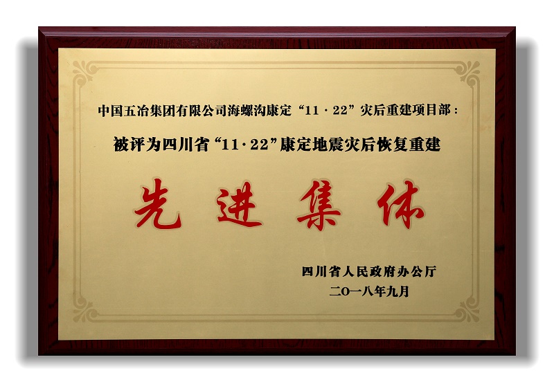 2018年9月,中國五冶集團兩項目部榮獲四川省“11.22”康定地震災后恢復重建先進集體稱號。