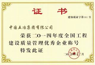 ??2015年2月,中國五冶集團(tuán)有限公司榮獲2014年度全國工程建設(shè)質(zhì)量管理優(yōu)秀企業(yè)稱號(hào)。