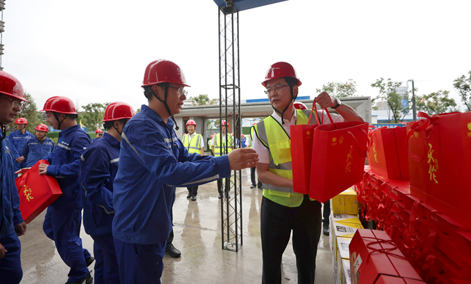 9月15日,中秋節來臨之際,集團公司黨委書記、董事長朱永繁,黨委副書記、總經理張剛等一行前往項目現場開展帶班檢查,慰問一線員工,并舉行座談會,向全體五冶人發出堅決拼經濟穩增長的號召。在蓉集團公司領導、非班子高管、副三總師、總監,集團機關部門負責人,四川地區各單位總經理及分管履約、安全負責人,四公司、十二公司班子成員及相關負責同志參加活動。