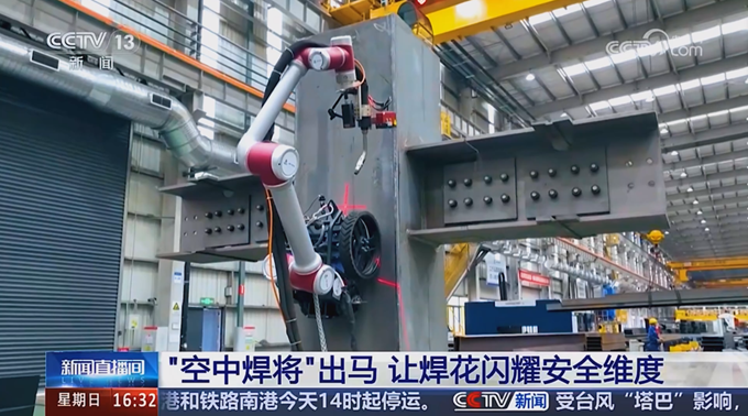 央視報(bào)道指出:中國五冶集團(tuán)自主研制的高空焊接機(jī)器人就像一個(gè)全能的“空中焊將”,有了它,高空?qǐng)鼍暗暮附幼鳂I(yè)不再讓人提心吊膽,效率也更高,這就是智能機(jī)器人帶來的科技推動(dòng)力。