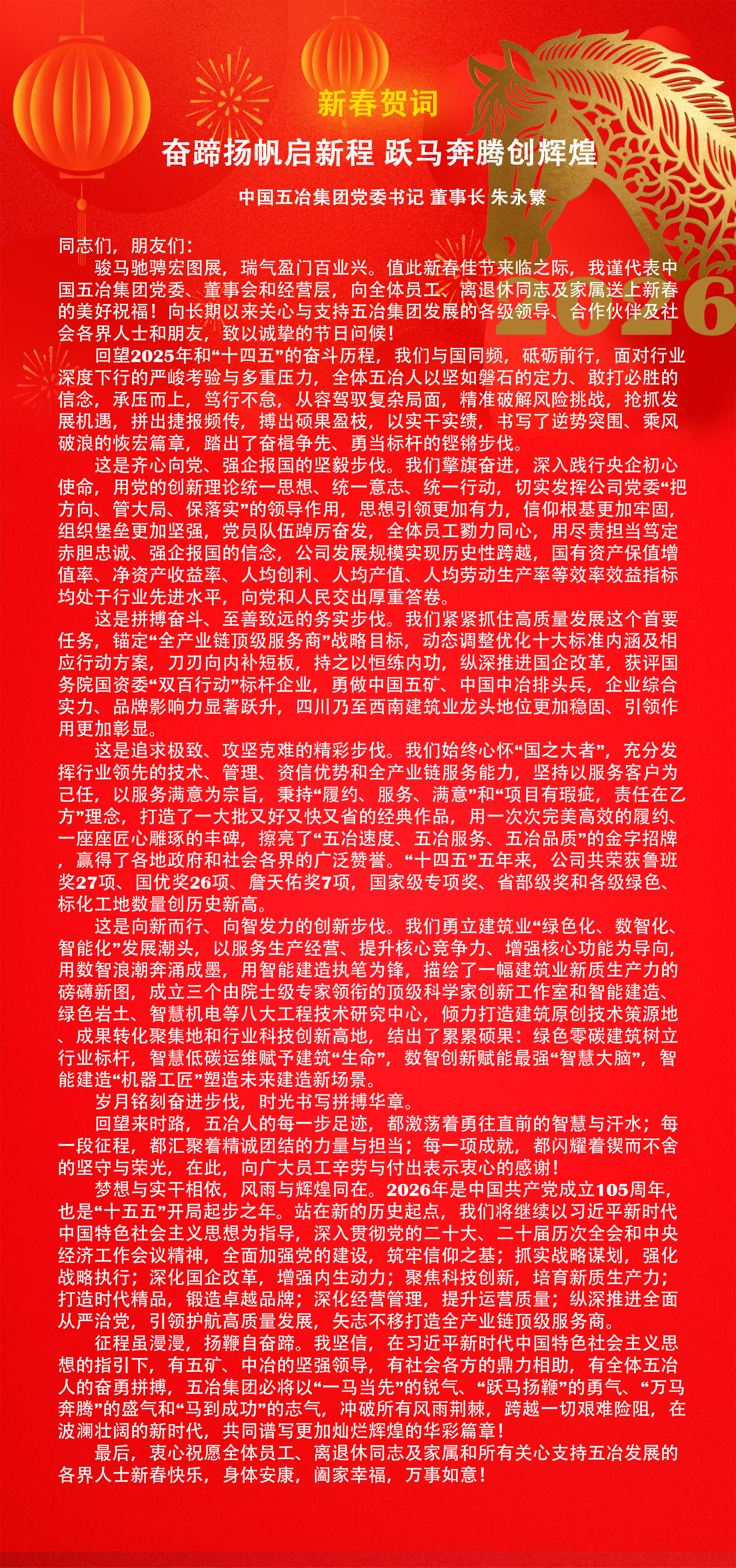 新春賀詞:奮蹄揚帆啟新程 躍馬奔騰創輝煌