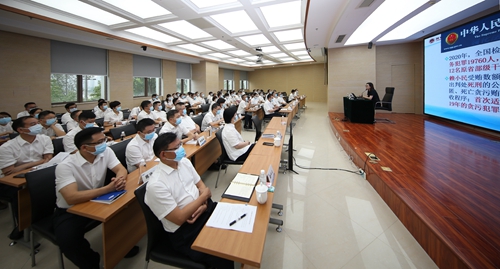 王佳簡要介紹了黨的十八大以來反腐敗斗爭形成的壓倒性態勢和全面從嚴治黨取得的成就,分析了當前的反腐敗形勢,重點圍繞預防職務犯罪這一主題,對職務犯罪的概念、職務犯罪主體、職務犯罪的風險類型等進行了深入講解,并詳細解讀了《刑法》有關條文。她還從一系列職務犯罪的具體案例入手,通過以案說法、法案結合的方式,就典型職務犯罪的各類場景、各類情形進行了深入淺出的具體剖析,向廣大與會人員進行風險提示,敲響廉潔警鐘。