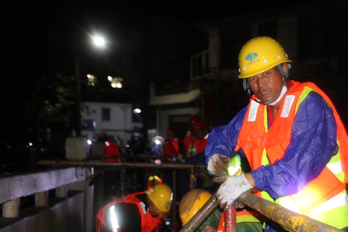因常綠溪上老橋護(hù)欄已有多段被大水沖毀,為保證河堤保護(hù)區(qū)不受洪水中夾雜的石塊及木頭沖擊,五冶搶險(xiǎn)隊(duì)伍用鋼管腳手架搭設(shè)護(hù)欄并用沙袋封堵,經(jīng)過(guò)五小時(shí)的艱苦奮戰(zhàn),構(gòu)筑了長(zhǎng)達(dá)兩公里的人民生命財(cái)產(chǎn)安全防線。搶險(xiǎn)結(jié)束后,面對(duì)當(dāng)?shù)仉娨暸_(tái)的鏡頭,周善輝坦言:“中國(guó)五冶集團(tuán)是國(guó)家的五冶,是人民的五冶,在國(guó)家和人民需要時(shí),五冶人必將身先士卒、義不容辭、沖鋒在前。今天搶險(xiǎn)只是開(kāi)始,五冶人還將組建百人預(yù)備隊(duì),隨時(shí)等候政府及人民的調(diào)遣,為保障人民群眾生命財(cái)產(chǎn)安全貢獻(xiàn)央企力量。”