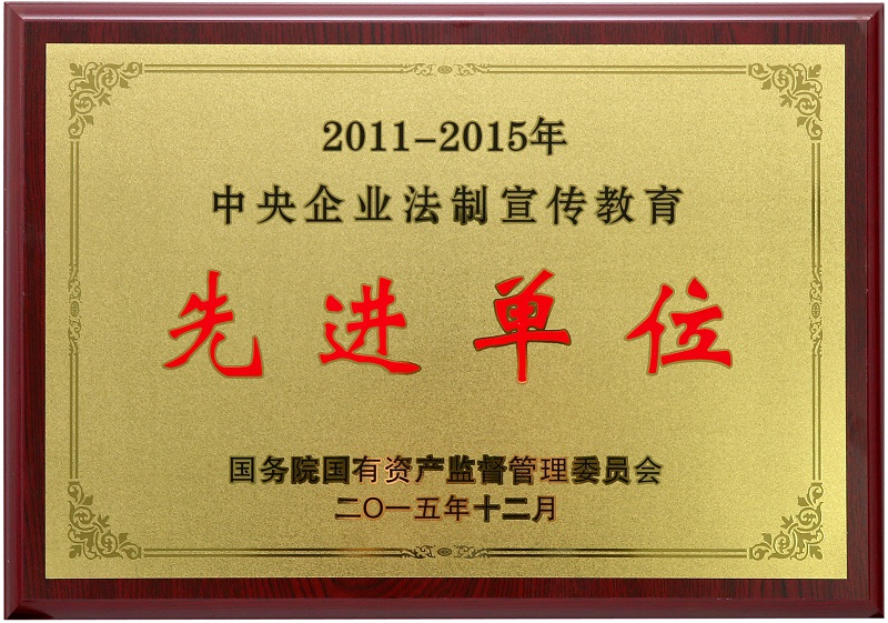 ????2015年12月,中國五冶集團榮獲2011-2015年度 中央企業法制宣傳教育先進單位稱號。