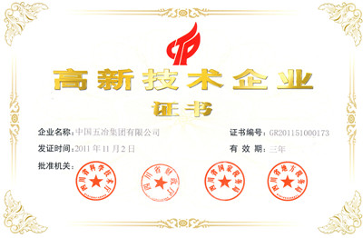 ??2011年11月,中國五冶集團榮獲由國家科技部核準(zhǔn),四川省科學(xué)技術(shù)廳、財政廳、國家稅務(wù)局、地方稅務(wù)局頒發(fā)的“高新技術(shù)企業(yè)”證書。