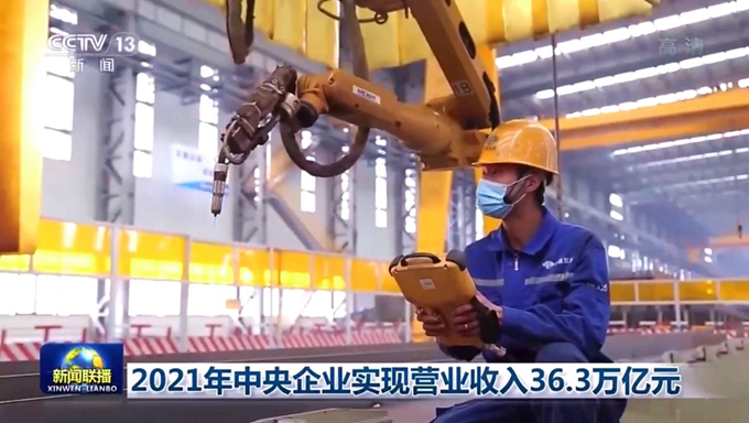 1月19日,央視綜合頻道CCTV-1《新聞聯播》以“2021年中央企業實現營業收入36.3萬億元”為題,播出了中國五冶建筑科技產業園生產場景,展示了央企“十四五”良好開局形象。