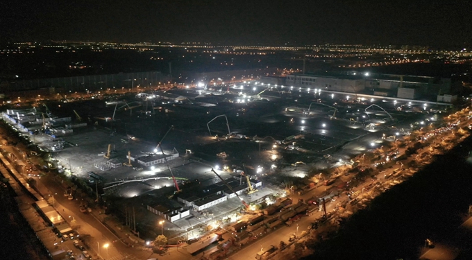 全面動員、高效統籌,展現五冶資源整合協調能力。連日來,中國五冶集團緊急指派在滬二級公司抽調精兵強將,組成援建隊伍,克服上海疫情管控造成的車輛人員通行困難,在上海市重大辦的全力支持下,持續組織近2500名參建人員投入現場,同時從上海及周邊城市緊急籌集1624個集裝箱分批次運赴現場,共調集344輛各式主要工程機械,由調度團隊24小時輪流值崗協調,確保滿足工程建設需要。