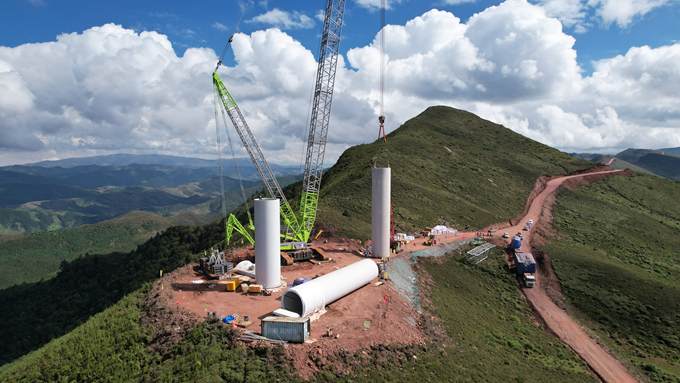 10月3日,中國五冶集團承建的四川涼山州喜德縣瑪果梁子130兆瓦風電項目首節塔筒順利完成吊裝。