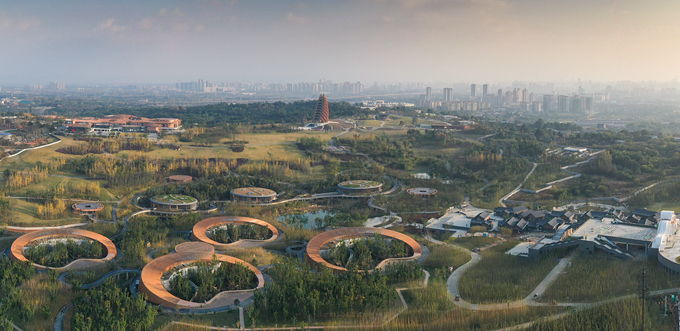熊貓基地改擴建項目位于四川成都環(huán)城生態(tài)區(qū),系第31屆世界大學生夏季運動會重要配套設施工程,也是四川省重點工程。項目通過專業(yè)的植被建模軟件及AI智能算法的運用,提前描繪了兼顧美感與施工可行性的景觀藍圖,打造出獨具特色的大熊貓主題城市文旅新名片。