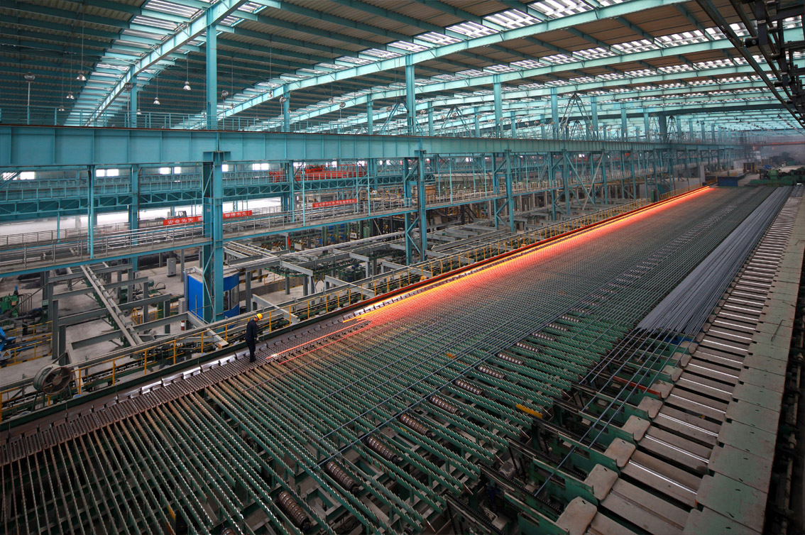 圖為威鋼高速線材生產線——中棒步進式冷床生產場景