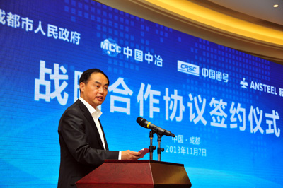 11月7日,成都市政府與中國中冶、中國通號、鞍鋼集團戰略合作協議簽約儀式在成都市天府新城會議中心舉行。成都市委書記黃新初,市委副書記、市長葛紅林,中國中冶總裁張兆祥,副總裁王秀峰出席簽約活動。