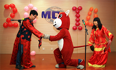 活動上,曲藝、小品、獨唱、歌舞表演等節目精彩紛呈,為現場觀眾們送上了節日的祝福。由2位小觀眾和其他6位大觀眾表演的互動游戲“蘿卜蹲”,孩子的天真童趣、獨具一格的表演形式,瞬間就把現在的氣氛引向了高潮。在傳統曲藝節目《三句半》中,幽默的語言、滑稽的表演,引起了現場陣陣掌聲。歌曲獨唱《最初的夢想》、《至少還有你》,小品《碰瓷》,歌伴舞《歡天喜地過大年》等節目,精彩的演藝、風趣的表演,讓現場的觀眾開懷大笑,高潮不斷。雖然時間倉促、節目準備不是很充分,但是快樂并沒有因此打折扣,現場觀眾都沉浸在了快樂、熱鬧的氛圍之中。