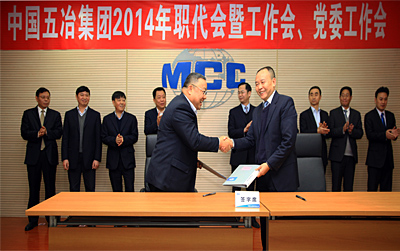 1月18日至19日,中國五冶集團2014年職代會暨工作會在五冶大廈隆重召開。公司領導程并強、蒙昌嘉、?徐永鋒、朱永繁、?劉偉、?馬學森、?陳雅、?田?舜、曹翔、萬明海、譚興山、黃德鴿、程先云,職工董事、監事及總經理助理、副三總師、上海有限公司班子成員、四川地區各分子公司班子成員、上海地區分公司黨政負責人、集團機關部門負責人、上海有限公司機關部門負責人和集團公司職工代表近200人參加了會議。大會由執行主席徐永鋒主持。