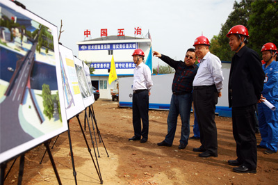 4月18日,中國五冶集團董事長、黨委書記程并強,董事、總經理蒙昌嘉,總工程師曹翔一行前往綿陽會展中心草溪河整治工程項目部視察指導工作。